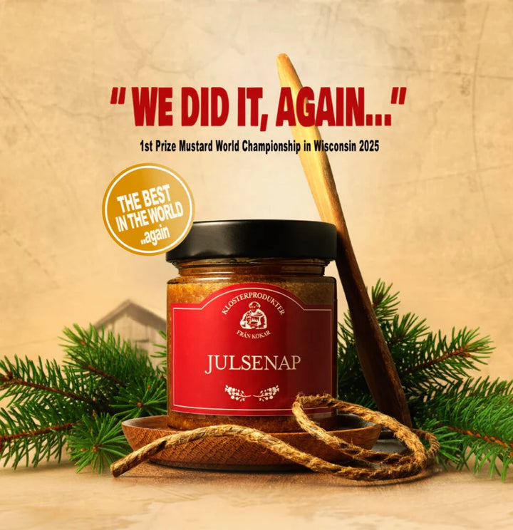 Julsenap Grand Champion – VM-guld 2025 🥇 Åländsk senap i världsklass På Åland, där havet möter skärgårdens karga skönhet, driver Olle Dahl sitt företag Klosterprodukter. Här tillverkas senap i små...